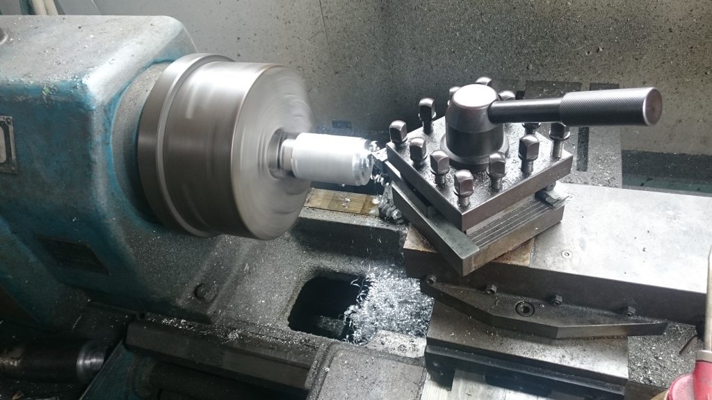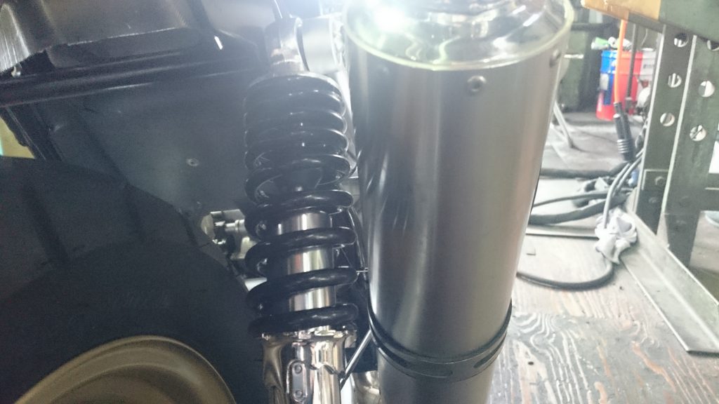 HONDA APE100 マフラー加工 マフラーステー制作 ノーマルマフラーを加工し、お客様ご希望の角度に合わせ、溶接加工 その後、アルミ材を旋盤で加工、カラーを制作。 アルミ無垢材を曲げ、アルゴン溶接し、ステーを制作しました。 実績一覧に戻る